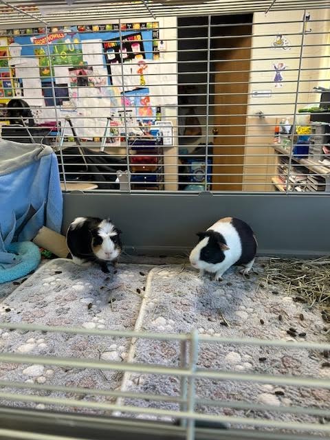 I adopted Jesse the little guinea pig. He was so tiny. He is doing great! He has a buddy that he shares a cage with and they get along great. The two of them are my second graders’ class pets.